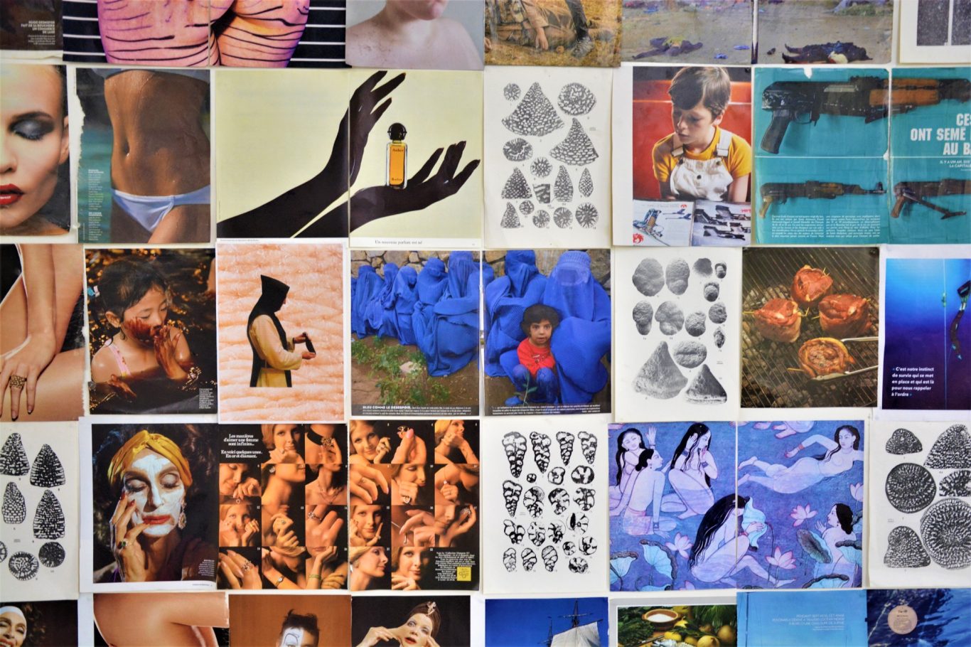 Installation In Situ, dimensions variables, pages en formats A4 issues du livres, magazines et revues de toutes sortes
